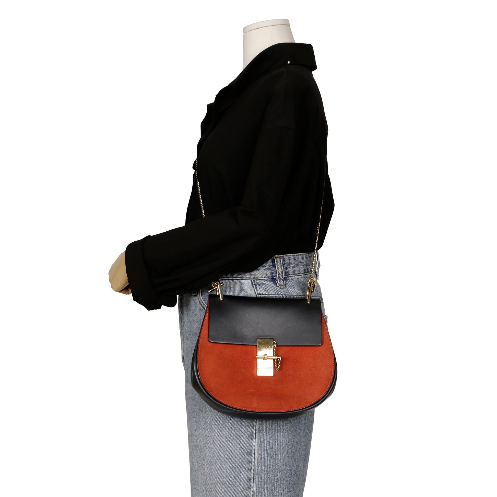 3s0490 ブラック レザー ブリック スエード ドリュー チェーン ショルダー 兼 クロスバック 56147854