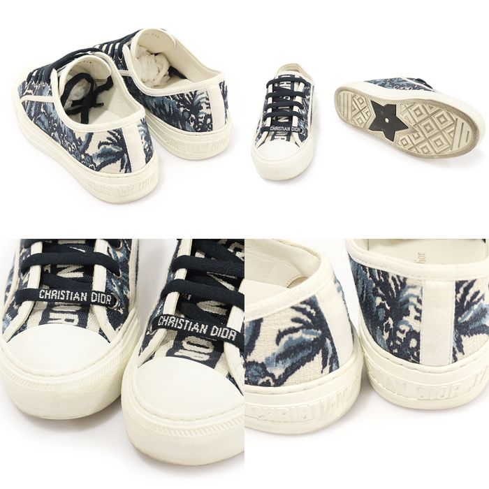 - インディゴブルーのDior Palms刺繍コットン素材