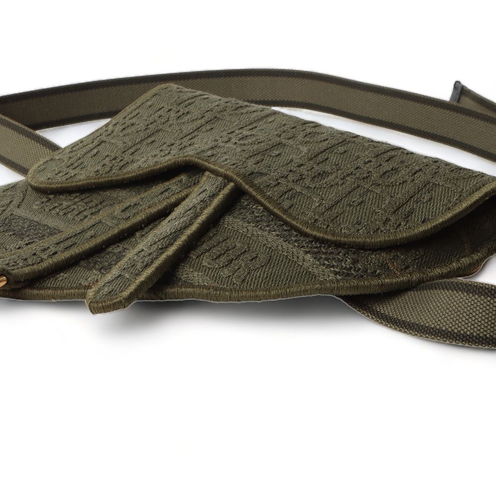 - カーキカラーのオブリークパターンのサドルポーチベルトバッグ