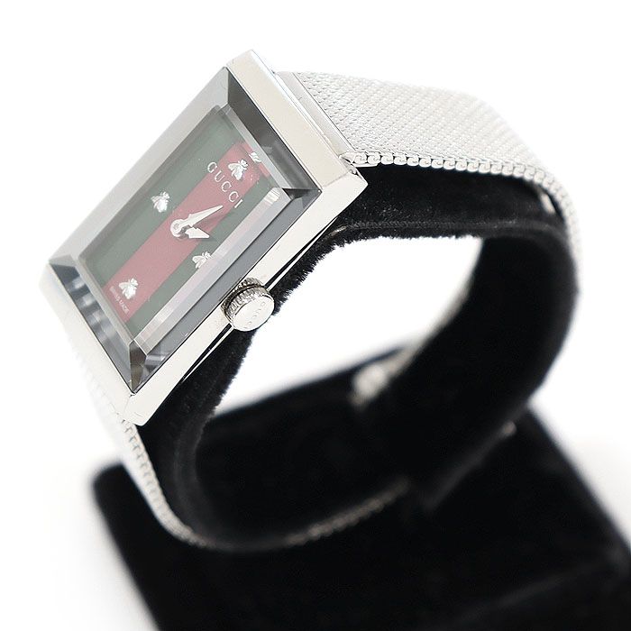 - ウェブダイヤルには、グッチの象徴であるハチの装飾が施されています。