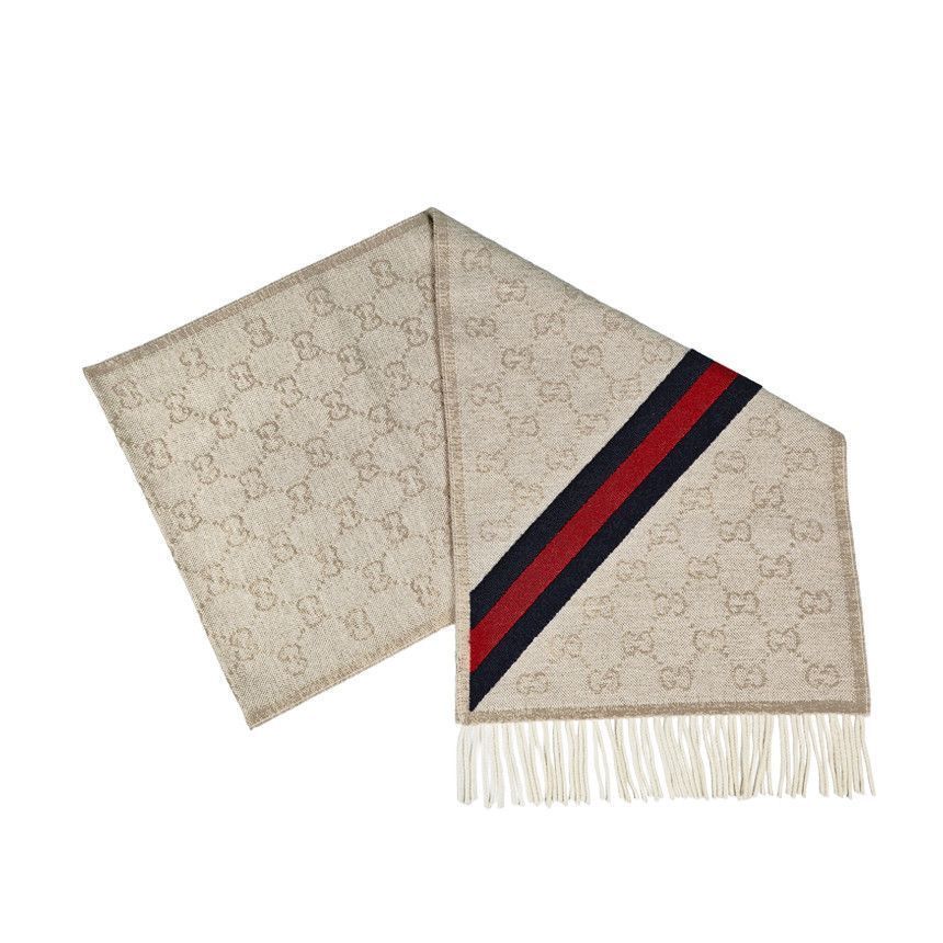 Product Name: Gucci Wool Scarf 570603 3G200 9568 Web Logo Beige 149747661