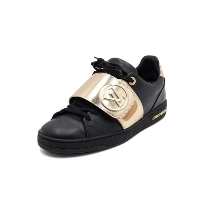ブラックレザーゴールドベルクロフロントロー女性スニーカー aa58019 152317211