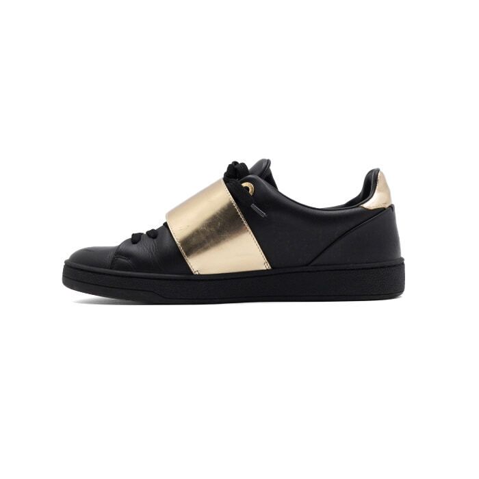 商品名: ブラックレザーゴールドベルクロフロントロー女性スニーカー aa58019