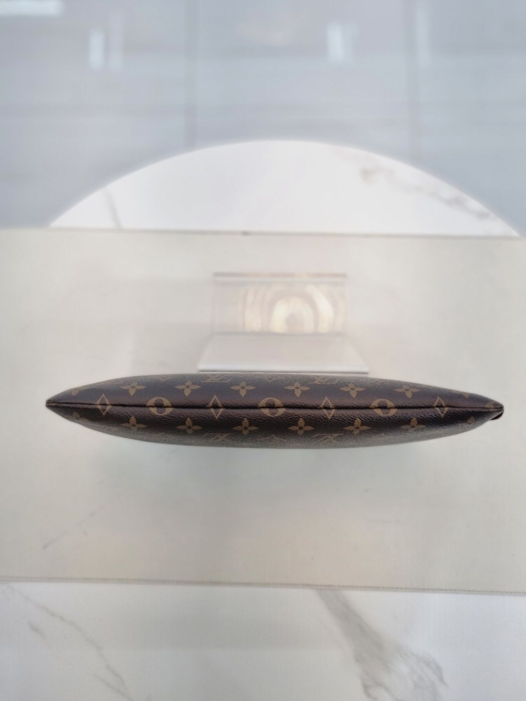 - 旅行バッグの中の小物をきれいに持ち運ぶために活用できるクラシックなモノグラムキャンバス素材の旅行用スリーブです。