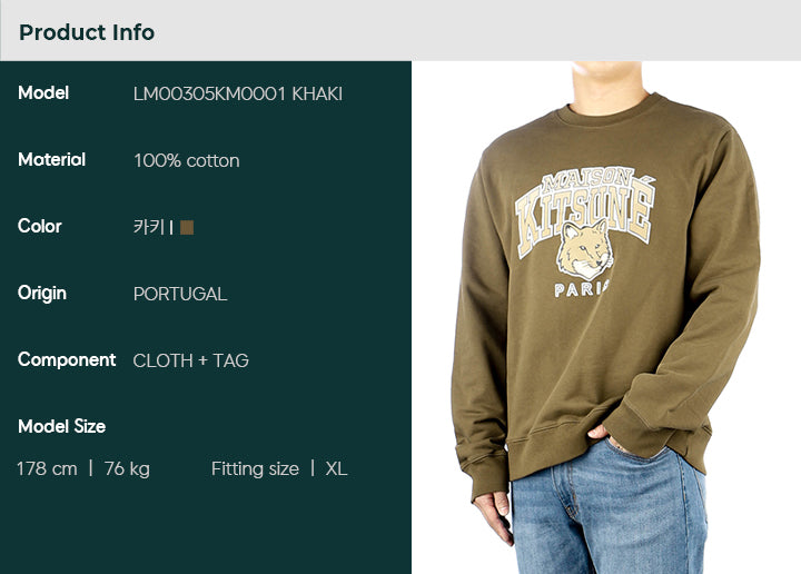 商品名:メゾンキツネ メンズ キャンパスフォックス スウェットシャツ (LM00305KM0001 KHAKI) 55201789