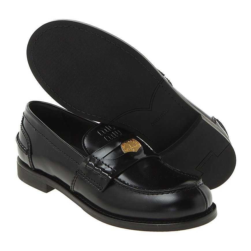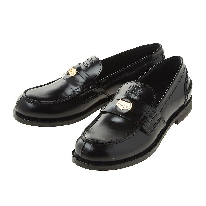 Product Name: Miu Miu 5D773D ULX F0002 FW25 Women's Logo Penny Loafers 153098726