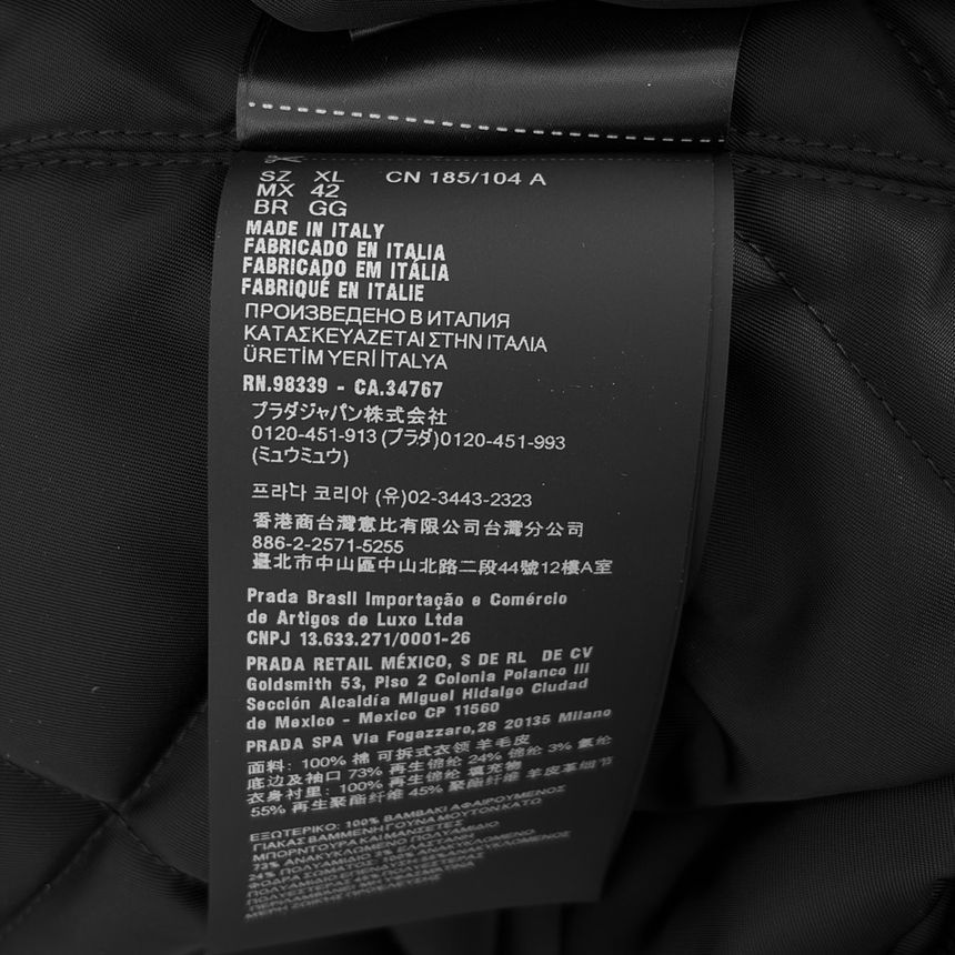 - 構成品 : 本品 + ハンガー + タグ + 品質保証書 + 予備ボタン + プラダタグ