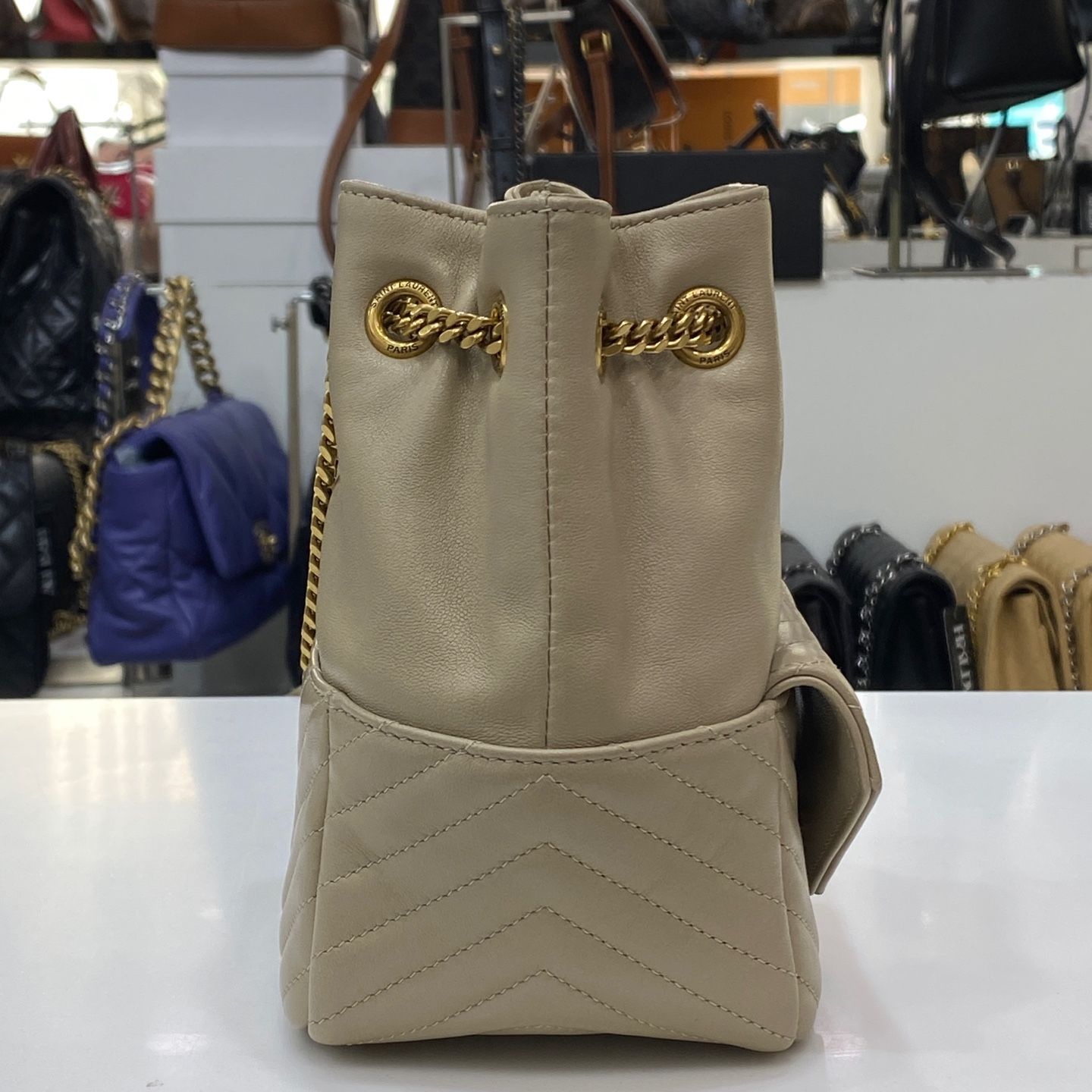 商品名: キルティング バケットバッグ ベージュ ゴールド 701631