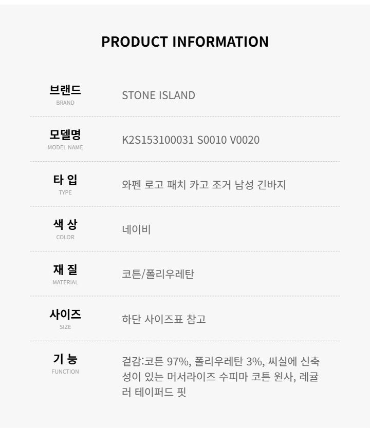 Product Name: Stone Island K2S153100031 S0010 V0020 Men's Trousers 149527254