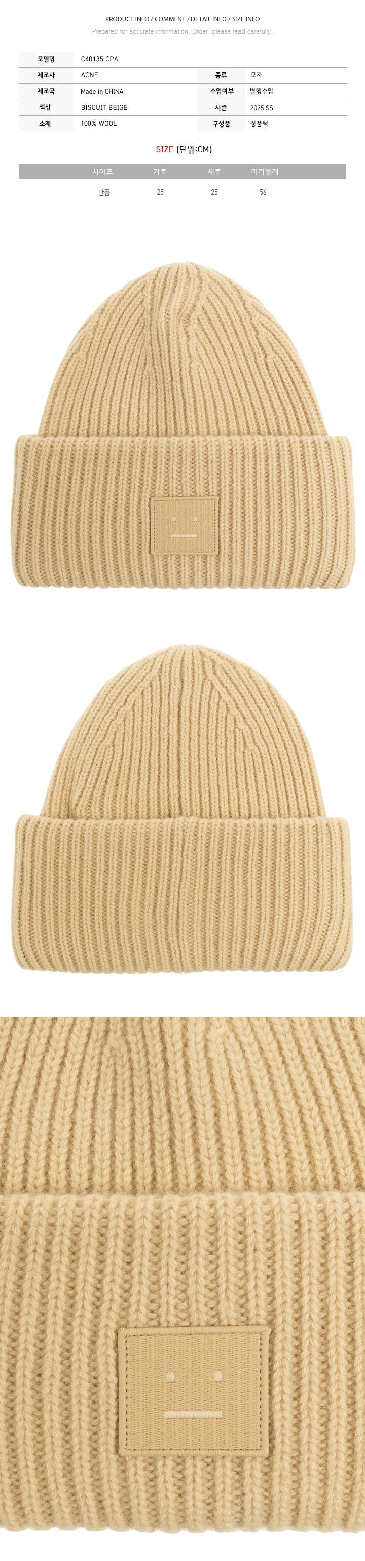 25ss face patch wool beanie biscuit beige c40135 cpa 149068921