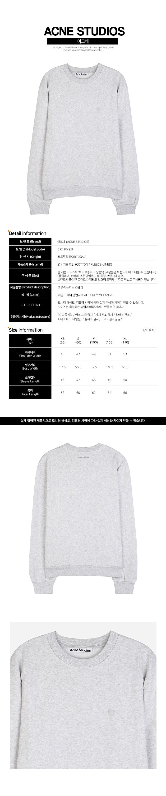 Product Name: Acne Studios Crewneck Fleece Sweater Pale Grey Melange CI0186 92H 146280004