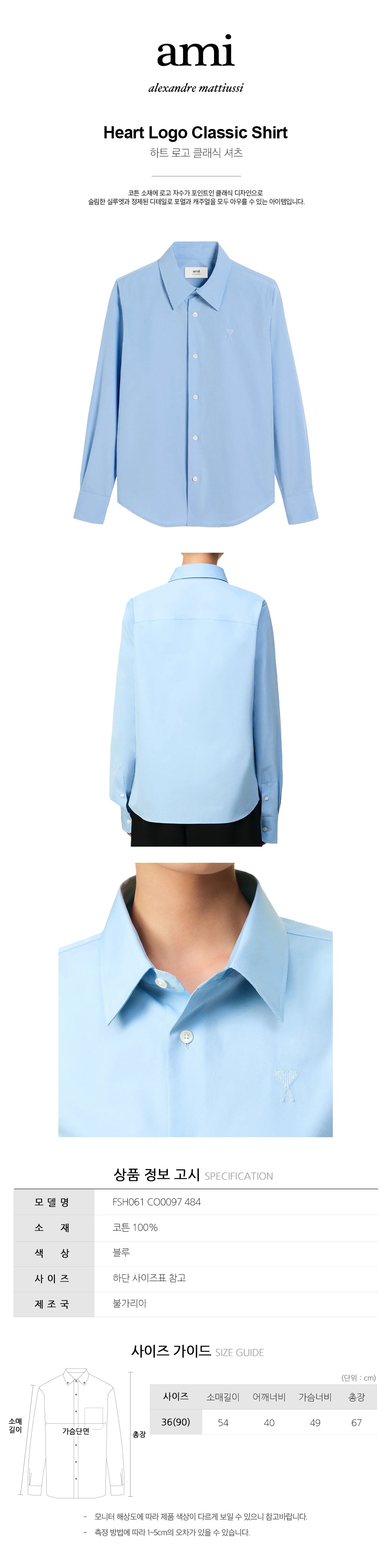 Product Name: AMI Heart Logo Classic Shirt Blue FSH061 CO0097 484 136047773