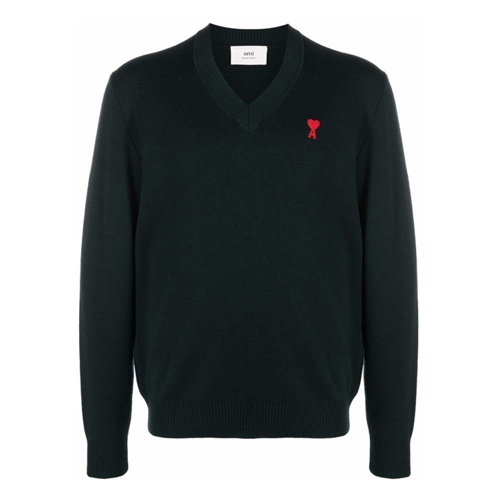 Product Name: AMI Small Heart Logo V-Neck Knit Black E22HKS201 001 001 33688889