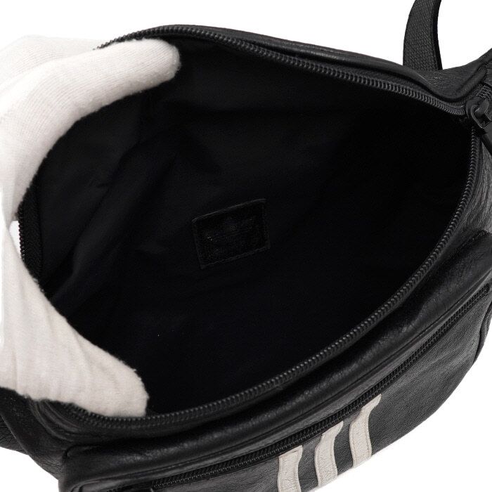 - This is a unisex black lambskin three stripe sling bag belt bag crossbody.