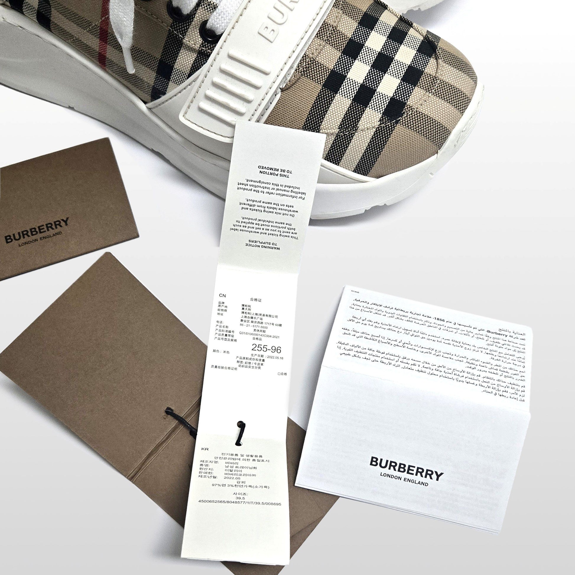Product Name: Burberry Check Leather Sneakers Beige 39.5 255mm 8048577 147518701
