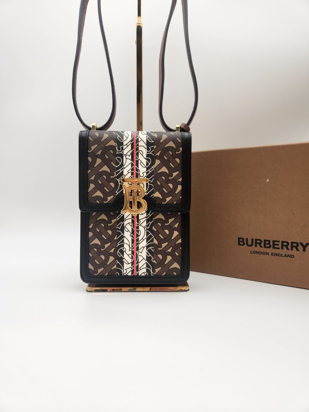 - Made from E-canvas and topstitch leather with Burberry monogram lock details