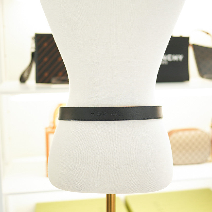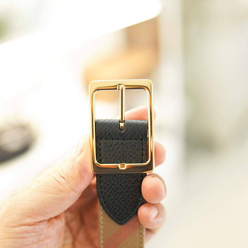 - Glossy gold square buckle adds a sleek touch