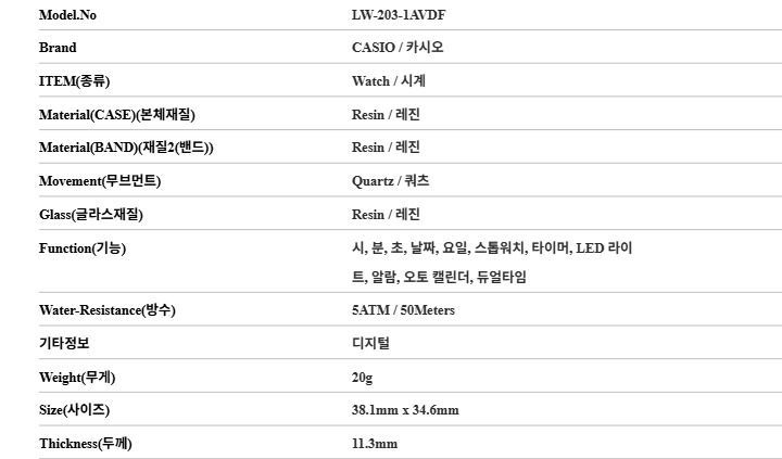Product Name: Casio LW-203-1AVDF Unisex Urethane Watch 150400154