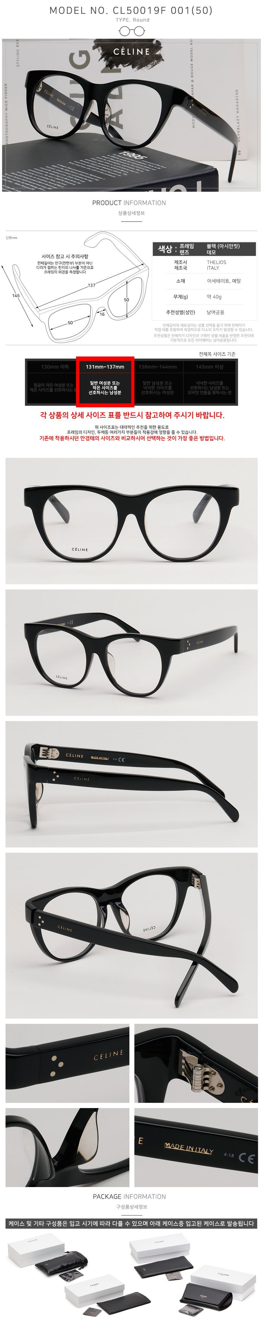 Product Name: Celine Eyeglasses Frame CL50019F 001 Round Cat Eye Black Acetate Luxury Asian Fit Daily 136219877
