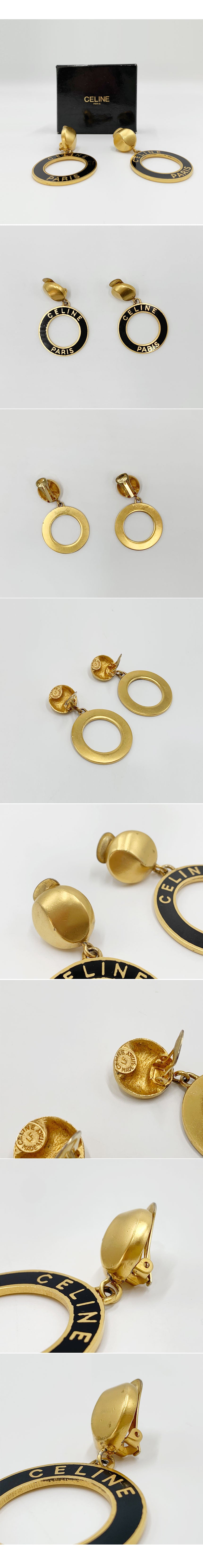 Product Name: Celine Logo Circle Round Drop Clip Earrings Gold Vintage 12345 143212684