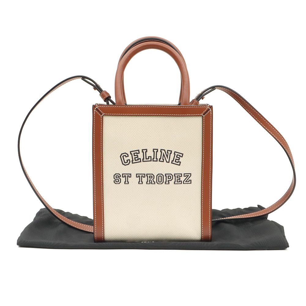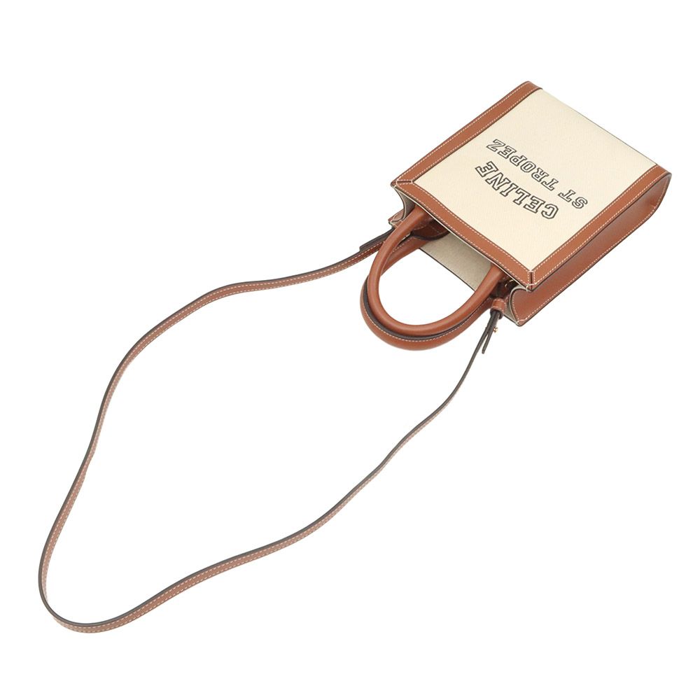 Product Name: Celine Natural Cotton Canvas Tan Calfskin Cabas Saint Tropez Mini Vertical 2WAY / 193302DHW.02NT 151213338