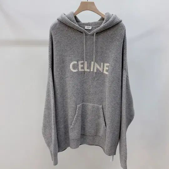 Product Name: Celine Ribbed Wool Knit Hoodie Gray 2XL 152977357