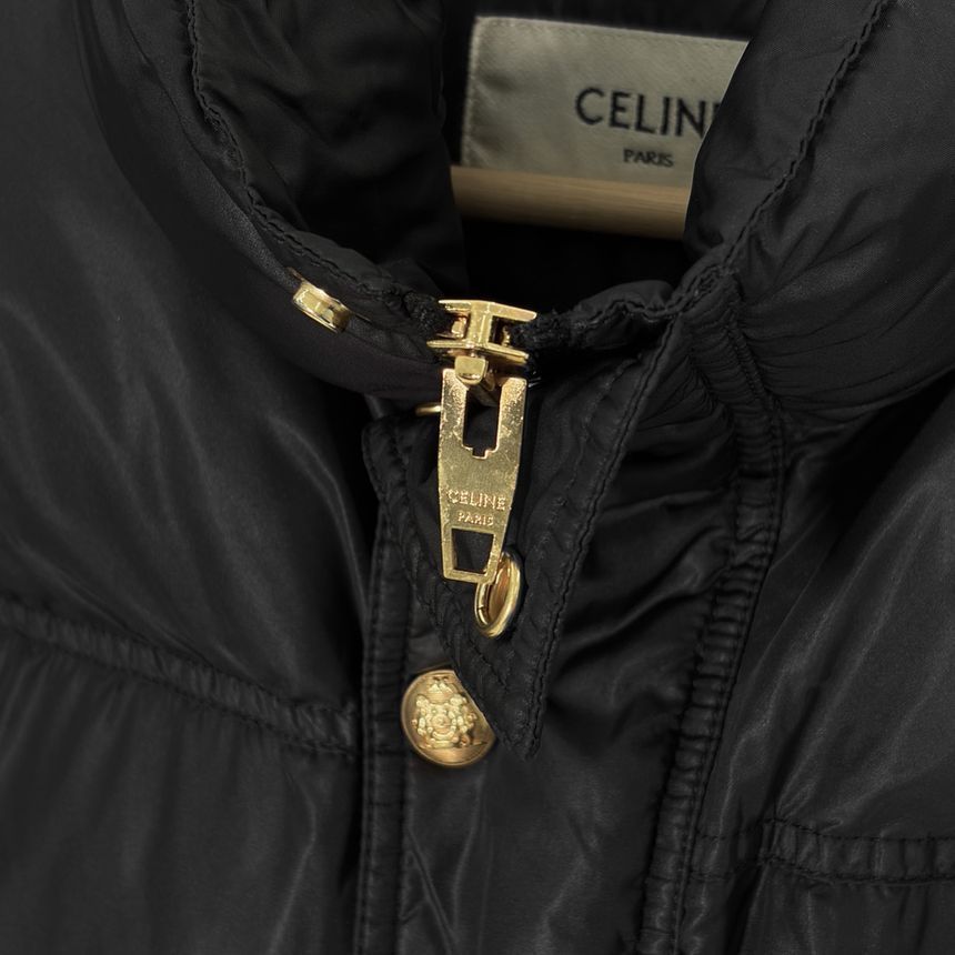 Product Name: Celine Embroidered Logo Triomphe Quilted Puffer Vest Jacket Black 34 147620775