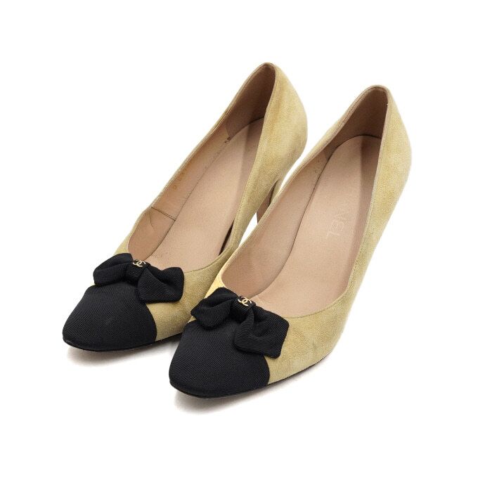 Product Name: CHANEL Beige Suede Ribbon Detail Women's Pumps 12345 152316923