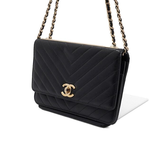 black chevron lambskin trendy cc woc shoulder bag with gold chain a80982 152315379