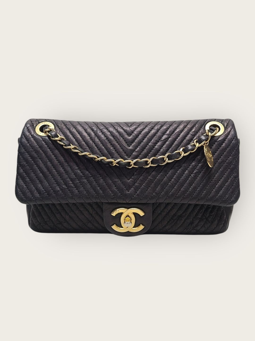 black gold chain chevron medal flap shoulder bag medium 21 series 141812532