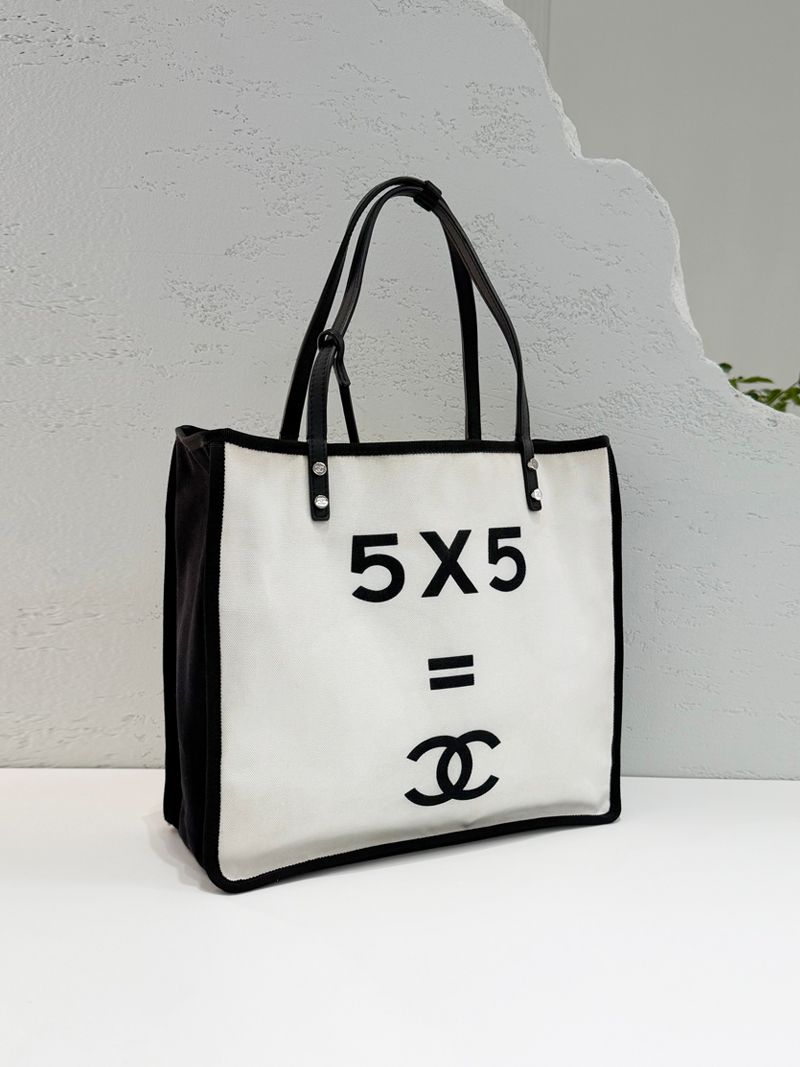 Product Name: CHANEL Canvas Tote Bag in White and Black 20 Series A92884 151329386