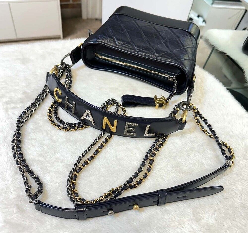 - Product Name: Chanel Gabrielle Hobo Bag Small Dark Navy/Gold with Strap AS0865 30 Series