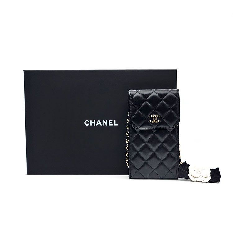 - Content: Chanel Lambskin Camellia Phone Holder Chain Crossbody Bag