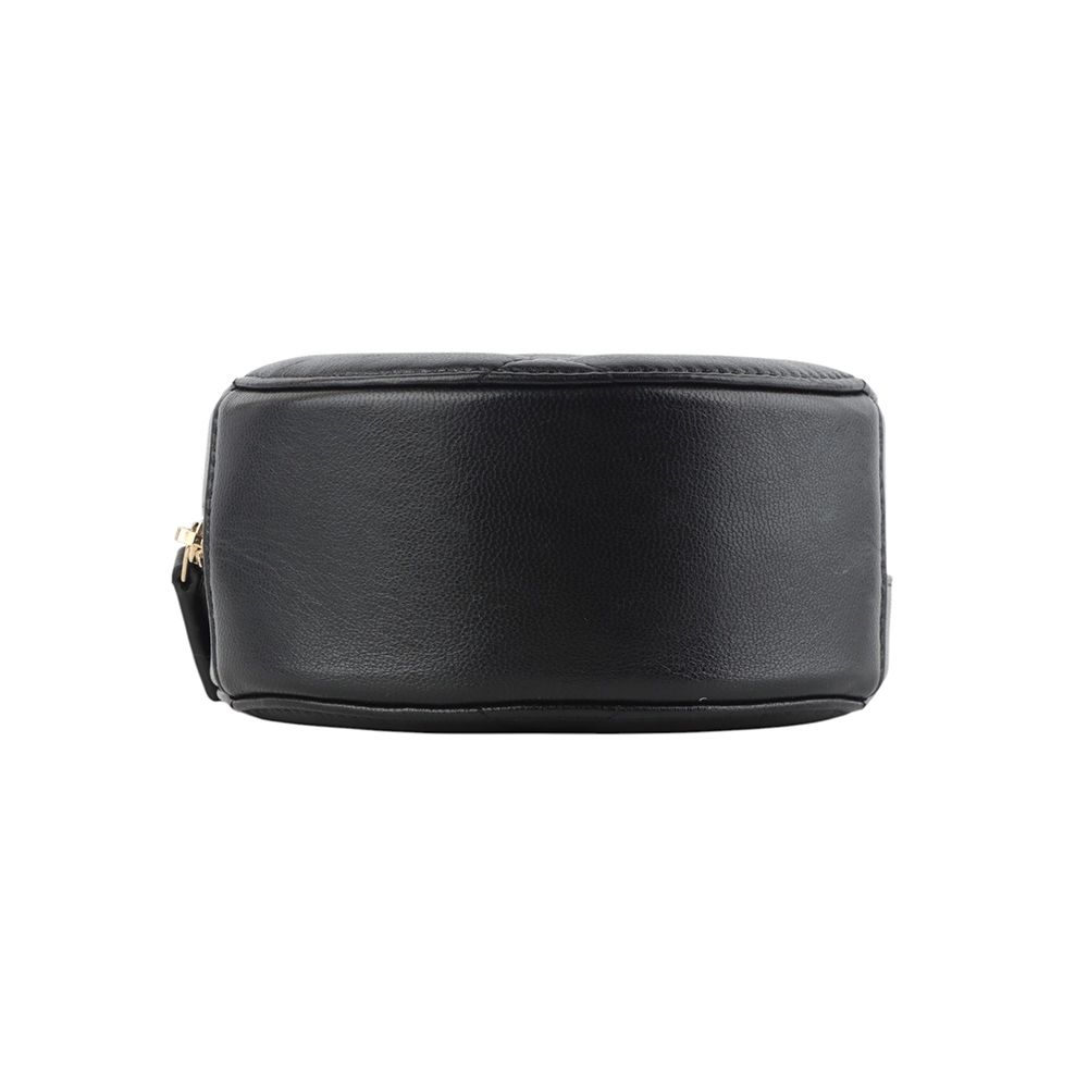 - Features a voluminous round shape and gold-tone chain CC logo as a focal point.