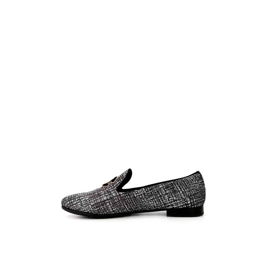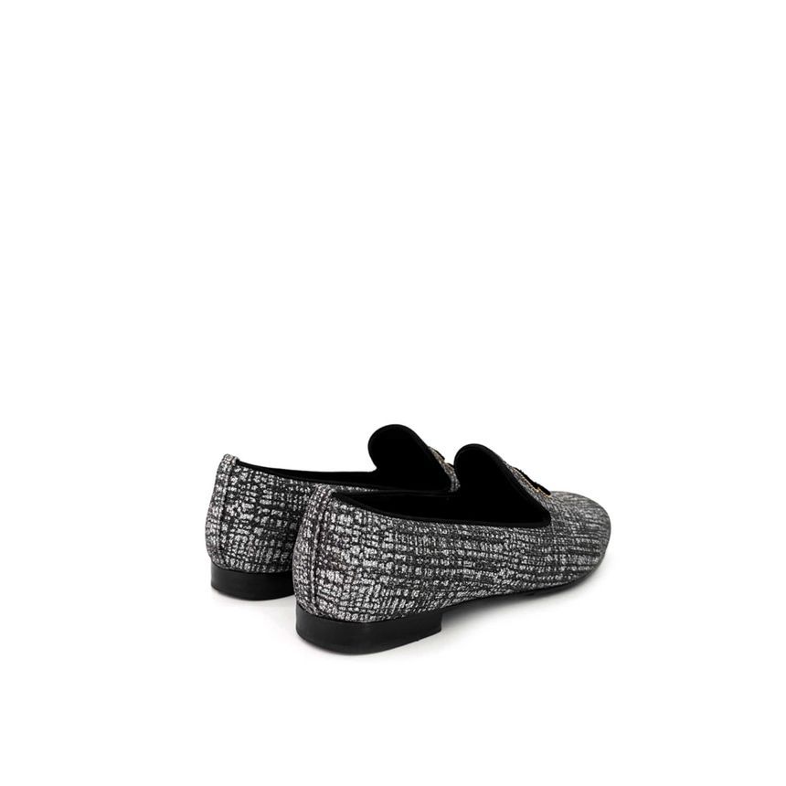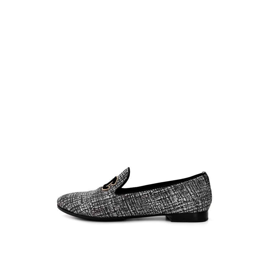 luxury biar [38c] women's tweed cc logo moccasin fantasy flat loafers shoes silver 143717799