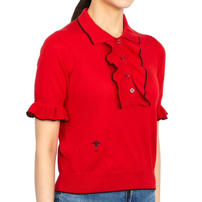 Product Name: Dior Christian Women's Collar Frill Short Sleeve Knit Regular Fit 314S52AM102 3829 41999214
