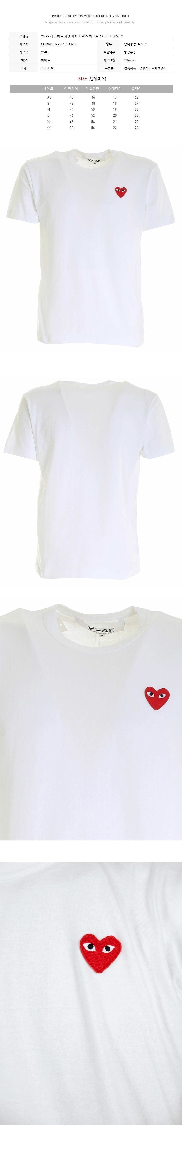 Product Name: Comme Des Garcons 26SS Red Heart Wappen Patch T-shirt White AX-T108-051-2 151009444