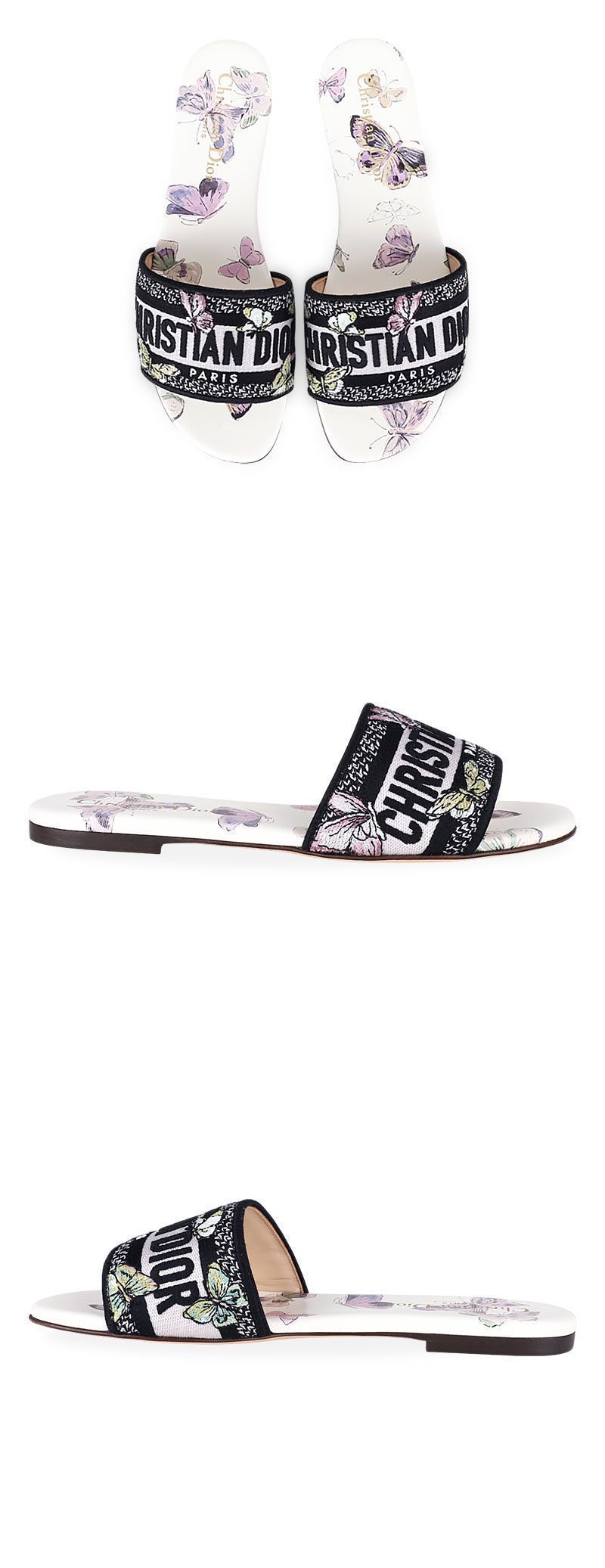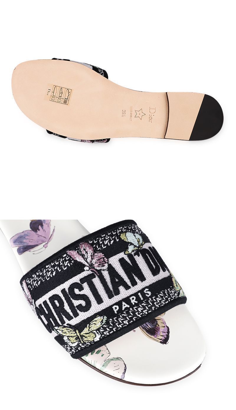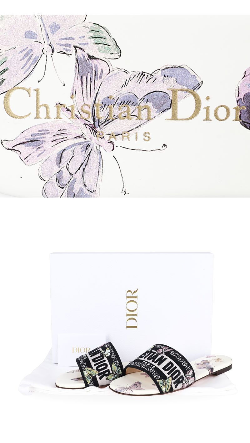 Product Name: Dior Women's Embroidered Cotton and Butterfly Mule Slippers (White/Purple) 83W 151665500