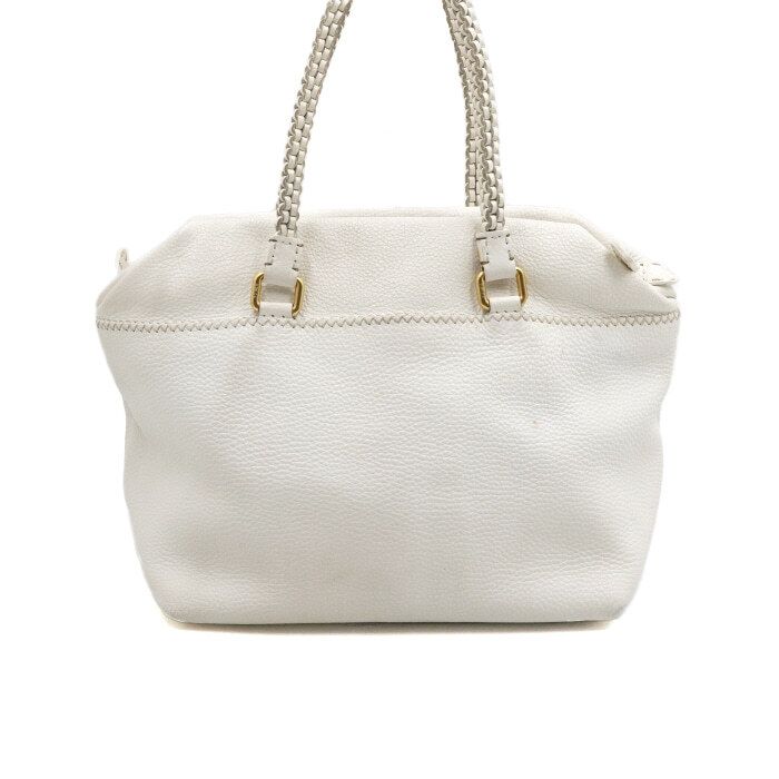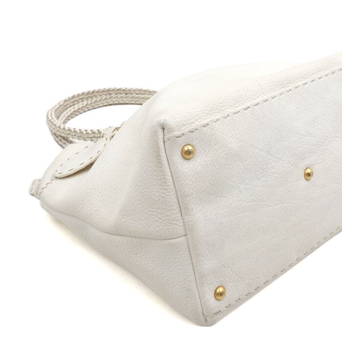 Product Name: Fendi White Leather Selleria Woven Handle Tote Bag and Shoulder Bag 8BN189 152316323