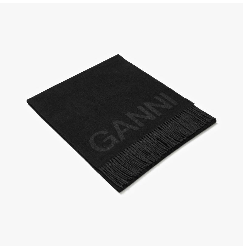Product Name: Ganni Intarsia Logo Fringe Scarf A3905 099 144592151