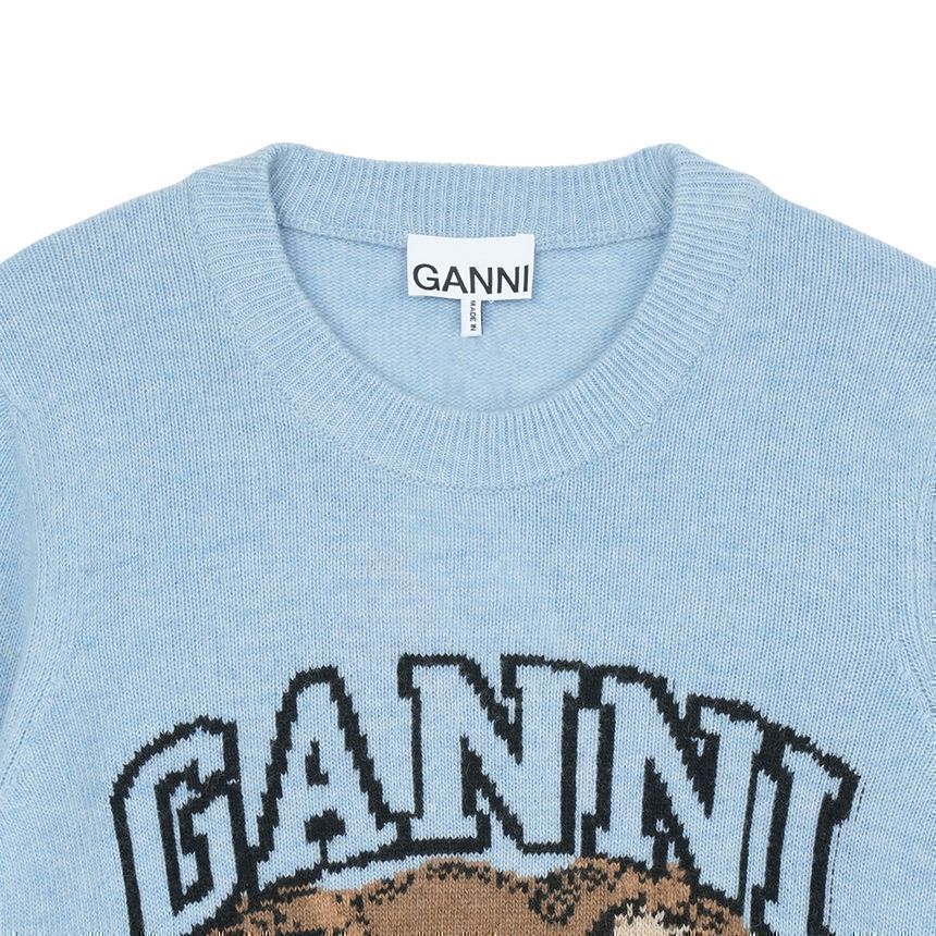Product Name: Ganni Women's Graphic Wool Sweater Knit Baby Blue A1070047-646 150437799