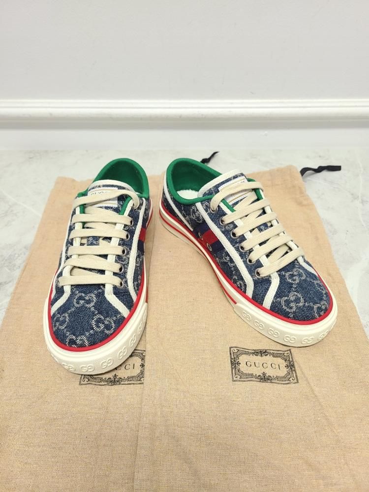 Product Name: Gucci Denim Blue Three Stripes 1977 Tennis Sneakers 117540218
