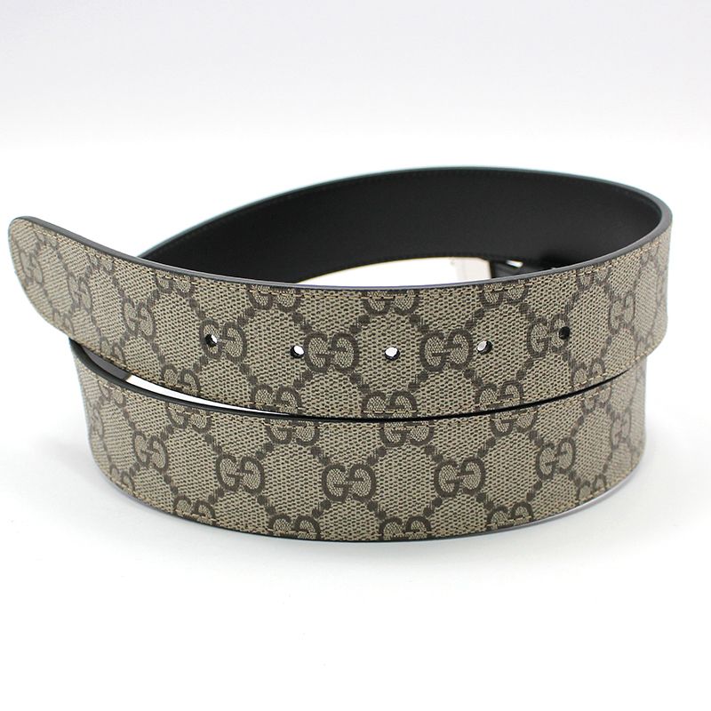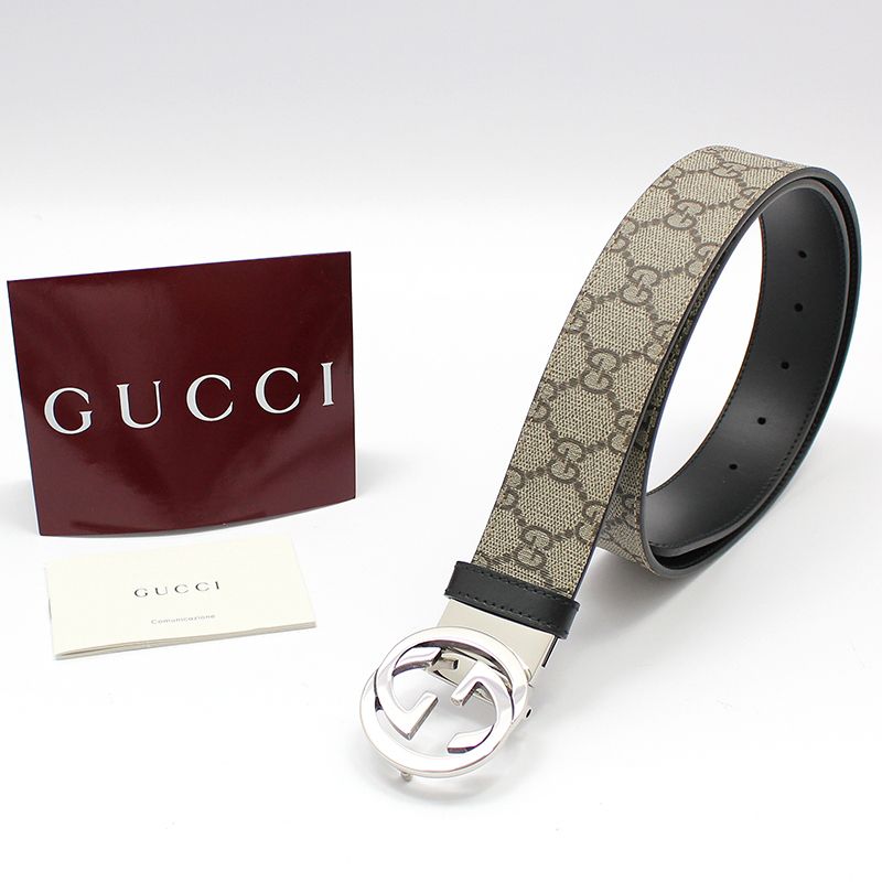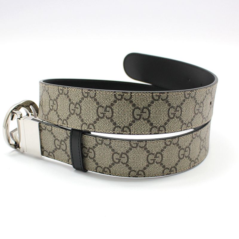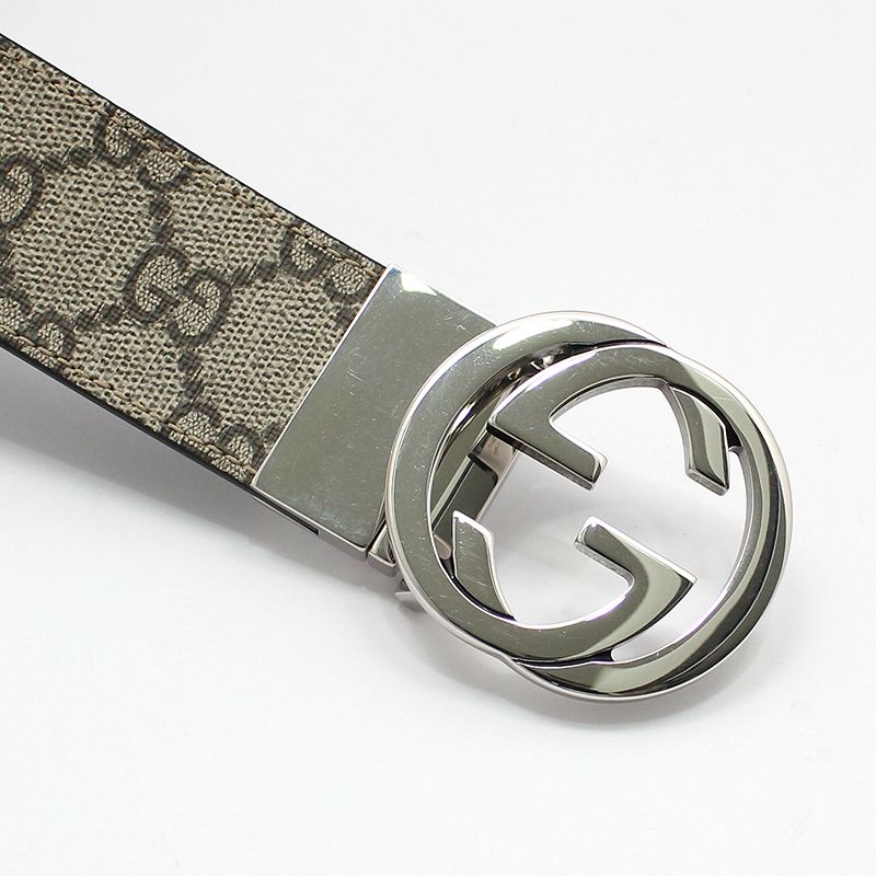 Product Name: Gucci 473030 GG Supreme Silver Interlocking Buckle Reversible Double-Sided Belt 85 115088923