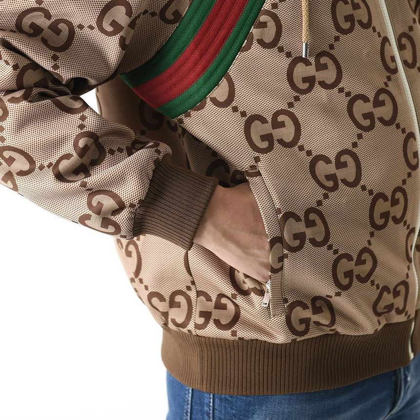 Product Name: Gucci Web Jumbo GG Hooded Zip Jacket Beige 713974 XJETI 2270 147583362