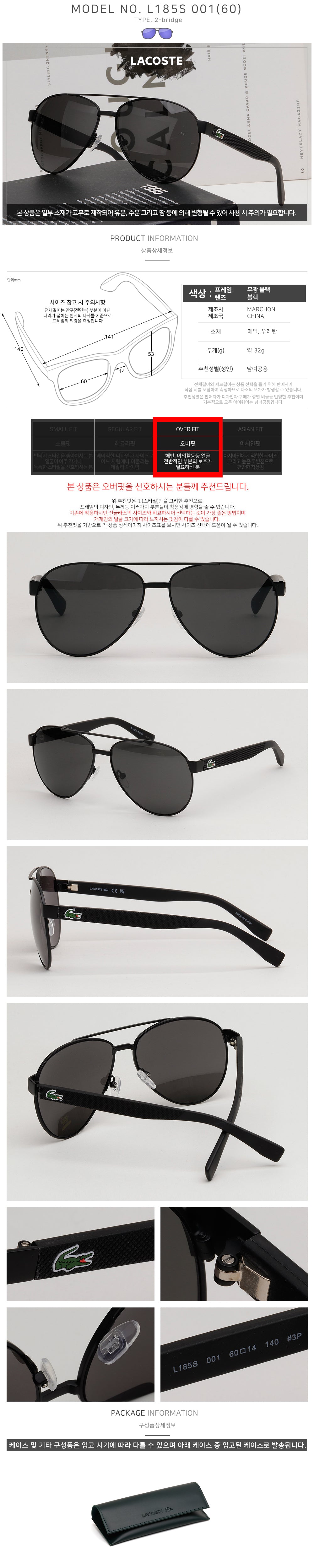 Product Name: Lacoste Sunglasses L185S 001 Black Oversized Fashion Bowtie Double Bridge Logo Decoration 140935283