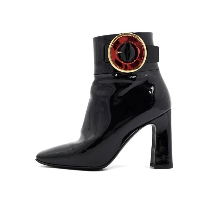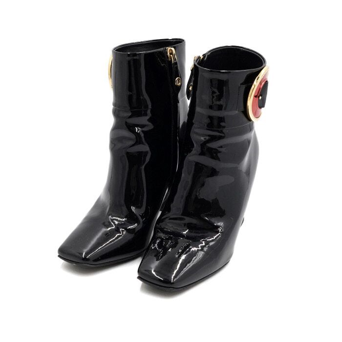 Product Name: Louis Vuitton Black Gold Circle Buckle Patent Leather Women's Ankle Boots 52060 152897801