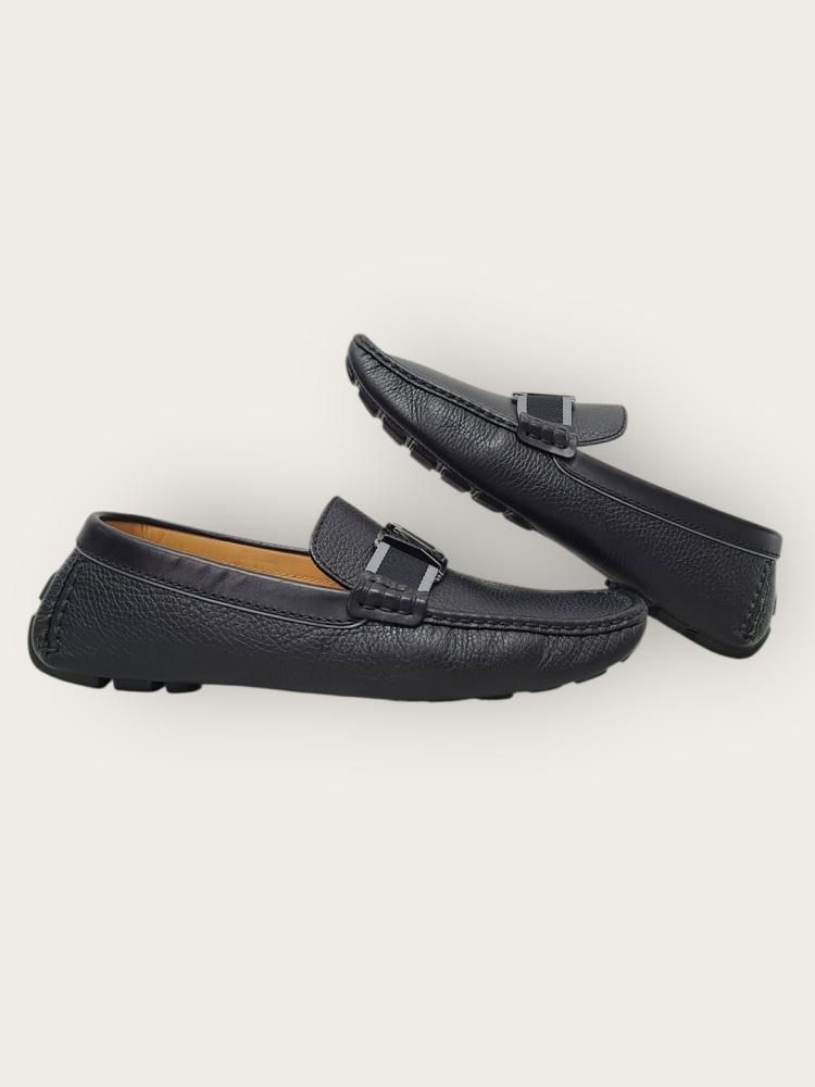black lv logo leather driving loafer 136183711