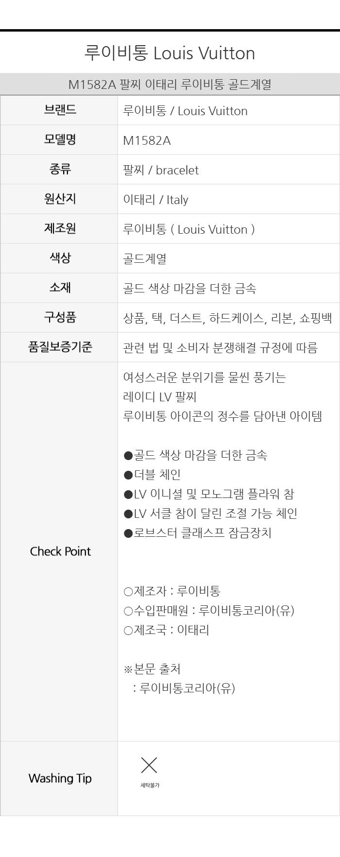 Product Name: Louis Vuitton Ladies LV Bracelet M1582A 116245390