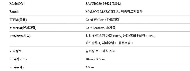 Product Name: Maison Margiela P8622 T8013 Unisex Bi-fold Wallet 151111597