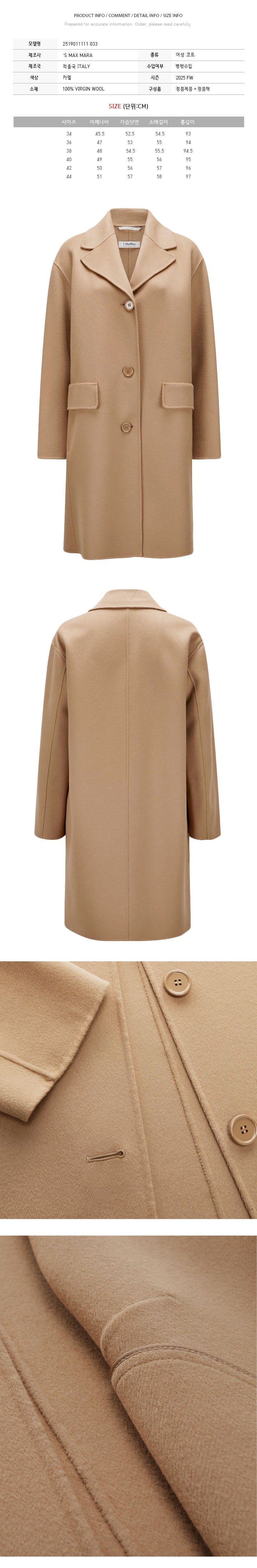 Product Name: MaxMara CIELO Wool Coat Camel 2519011111 033 149268368